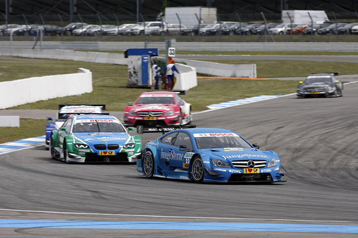 Με μία πειστική εμφάνιση για τους δύο οδηγούς της Mercedes-Benz ξεκίνησε το πρωτάθλημα DTM. Στον πρώτο αγώνα της σεζόν στο Hockenheim, οι Gary Paffett και Jamie Green είχαν κρατήσει την ορμή τους από πέρσι και κατάφεραν να κατακτήσουν τις δύο ψηλότερες θέσεις του βάθρου αφήνοντας την τρίτη για τον Mattias Ekstrom με Audi. Ο Paffett εκκίνησε τον αγώνα από την έκτη θέση του grid, ωστόσο η κακή εκκίνηση των Dirk Werner και Mike Rockenfeller, αλλά και ένα δεξιοτεχνικό προσπέρασμα στον Mortara έφεραν τον βρετανό να περνάει τρίτος με την ολοκλήρωση του πρώτου γύρου. Ο polemanMattias Ekstrom έκανε λάθος στη δεύτερη στροφή και επέτρεψε στον Green να περάσει επικεφαλής και ο πρωταθλητής του 2005 έκανε την κίνησή του τρεις στροφές αργότερα. Η μοίρα του αγώνα κρίθηκε κατά τη διάρκεια των δύο pit stopγια αλλαγή ελαστικών. Ο Paffett έμεινε για έναν επιπλέον γύρο στην πίστα την ώρα που άλλαζε ελαστικά ο team mate του. Κατά την είσοδό του στον αγώνα βρέθηκε πλάι πλάι με τον Green και τον πέρασε έχοντας την εσωτερική στη στροφή που ακολουθούσε. Ο Ekstrom έχανε από τη στιγμή εκείνη περίπου 0.3 δευτ. ανά γύρο οπότε αρκέστηκε στην τρίτη θέση. Έκπληξη ήταν η επίδοση του Christian Vietoris ο οποίος ανέβηκε από τη 15η στην πέμπτη θέση. Ο αγώνας δεν πήγε πολύ κακά για την BMW λόγω της άσχημης εκκίνησης του Werner ο οποίος έκανε τετ α κέ από επαφή με τη Mercedes του Ralf Schumacher ο οποίος ενεπλάκη σε ατύχημα μαζί με άλλα τέσσερα συνολικά αυτοκίνητα. Ο Ralf τιμωρήθηκε για το οδηγικό του λάθος με ποινή διέλευσης από το pit lane, ενώ την ίδια τιμωρία υπέστη και ο Mortara για πρόκληση σύγκρουσης με την BWM του Jeoy Hand.