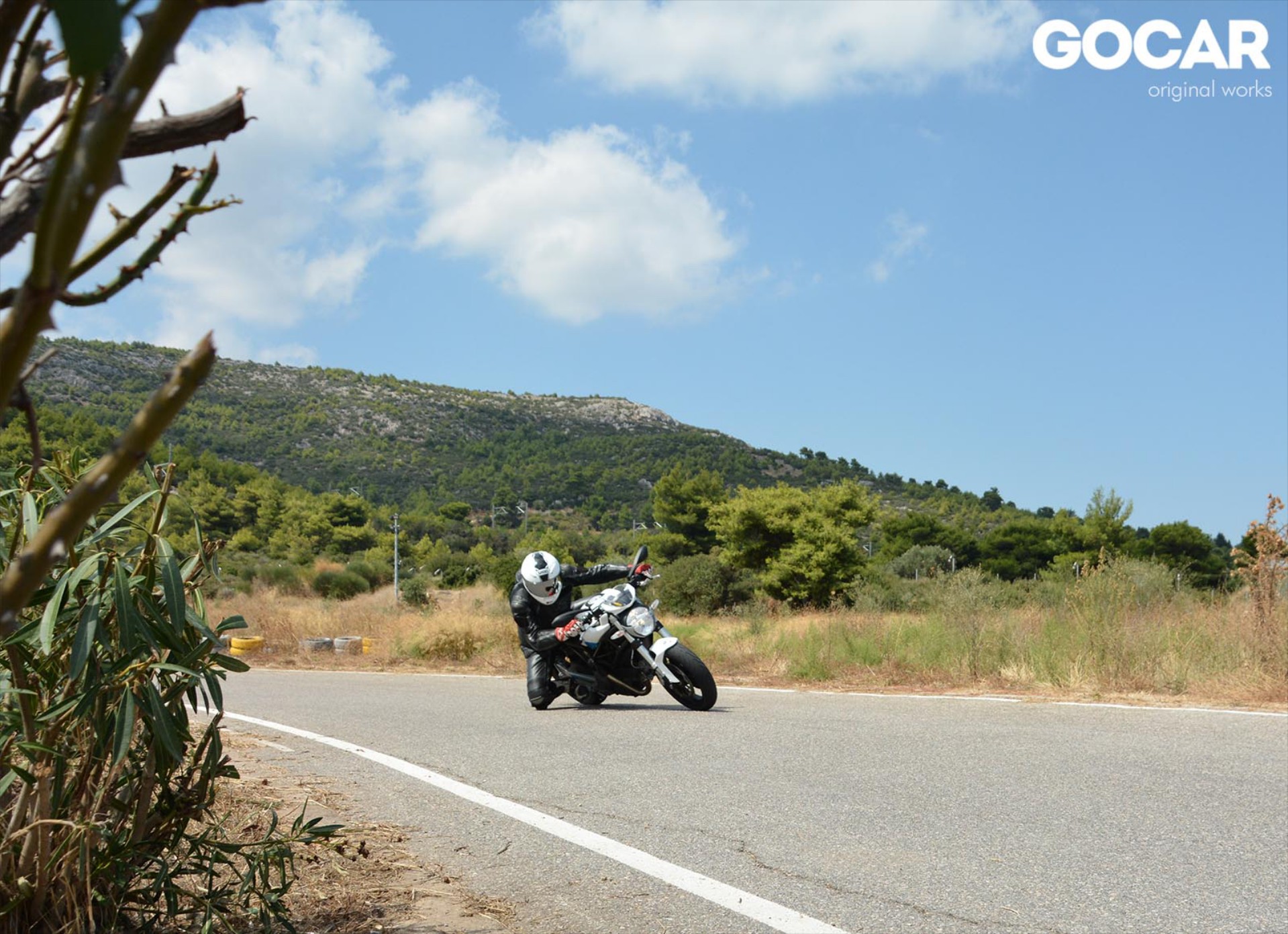 Το δηλώνει ξεκάθαρα τι ακριβώς είναι! Ένα γυμνό και αυθάδες στο τρόπο που εκδηλώνεται, ένα θηρίο εγκλωβισμένο σε συνονθύλευμα μετάλλων με το χωροδικτύωμα πλαίσιο να το φαντάζεσαι το κλουβί που το εγκλωβίζει. Ωραίες λαβές ανθρώπινες για κάθε μέρα, αν και στο μποτιλιάρισμα δεν κάνει like. Αστείο κόψιμο τιμονιού και βαρύς τύπου διακόπτης υδραυλικός συμπλέκτης θα σε κάνουν να βλαστημήσεις την ώρα και την στιγμή. Δώστου δρόμο και στροφή όμως και το StreetFighter λυσσάει με ακρίβεια τους 132 ίππους του και σε εθίζει με τον μπάσο ήχο και τα ακανόνιστα σκασίματα από τα δυο κομψά κανόνια. Σε καλό τάπητα χαράζει κυριολεκτικά τον δρόμο και απολαμβάνει τις κλίσεις μέχρι το όριο των ελαστικών, βομβαρδίζοντας με ουσιαστικές πληροφορίες τον αναβάτη που σε τέτοιο περιβάλλον, απλά δεν θα θέλει να κατέβει. Έλα όμως που πρέπει κάποια στιγμή να επιστρέψει στην βάση της! Μικρής διάρκειας άλλα παθιασμένη η σχέση με το 848…