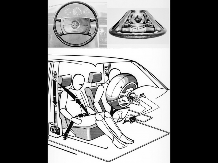 Στην Γερμανία, η Mercedes ασχολιόταν από το 1967, με την εξέλιξη της ιδέας του αερόσακου. Οι Γερμανοί, έκαναν πολλές δοκιμές που αποδείκνυαν την αξία ενός τέτοιου συστήματος στην ασφάλεια των αυτοκινήτων, μαζεύοντας στοιχεία, με στόχο την βελτιστοποίηση του. Από τον εφευρέτη της έκφρασης «παθητική ασφάλεια» Béla Barényi, ξεκίνησαν πολλές καινοτόμες τεχνολογικές εξελίξεις, συστημάτων ασφαλείας, τα οποία χαρακτήριζαν τις παλαιότερες σειρές της Mercedes της εποχής εκείνης.