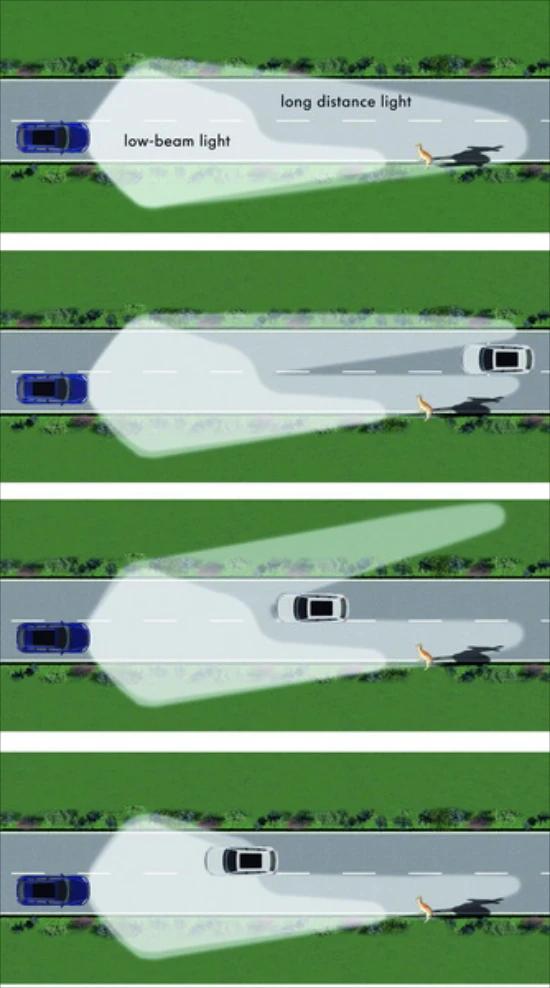 Το Dynamic Light Assist χρησιμοποιεί μία κάμερα η οποία είναι τοποθετημένη πίσω από το μπροστινό παρμπρίζ και παρακολουθεί τον φωτισμό μπροστά από το αυτοκίνητο. Σε περίπτωση που υπάρχει αντίθετα διερχόμενο όχημα, το σύστημα περιορίζει τη δέσμη των φώτων μόνο στην πορεία του αυτοκίνητου και αποκόπτει τον ενοχλητικό πλάγιο φωτισμό ο οποίος τυφλώνει τους οδηγούς στο αντίθετο ρεύμα.