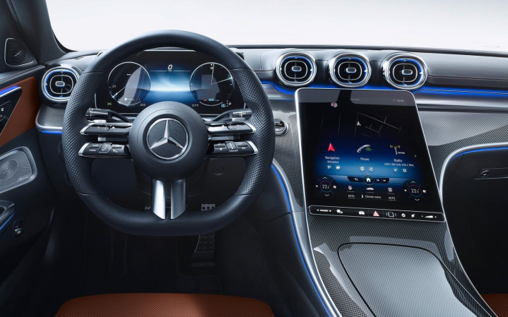 Ανέκαθεν, η Mercedes-Benz ήταν στην κορυφή των τεχνολογικών εξελίξεων. Το λειτουργικό σύστημα MBUX είναι από τα καλύτερα στην αγορά, ενώ ο τρόπος με τον οποίο εφαρμόζεται στη C-Class είναι τουλάχιστον εντυπωσιακός. Με σαφείς επιρροές από την S-Class, η πολύ μεγάλη οθόνη είναι η φυσική συνέχεια της κεντρικής κονσόλας. Βρίσκεται σε ιδανικό σημείο, έχει έντονη κλίση και εξυπηρετεί πολύ στην καθημερινότητα.