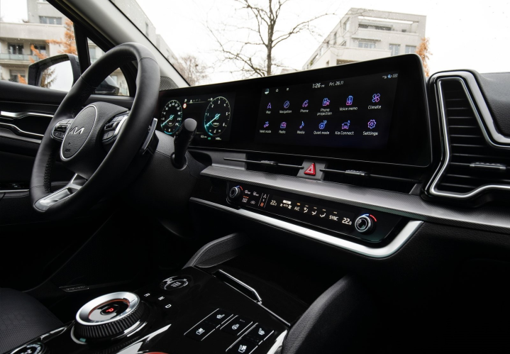 Το νέο Sportage είναι ένα μοντέλο που βοηθά σε πολύ μεγάλο βαθμό την εταιρεία να δείξει που έχει φτάσει. Κορυφαίο σε όλα τα επίπεδα, στο εσωτερικό του υπάρχουν δύο κυρτές οθόνες, μια για τον πίνακα οργάνων και μια για το infotainment. Είναι πανέμορφες και πολύ λειτουργικές. Το εντυπωσιακότερο όλων όμως, είναι ότι παρακάτω υπάρχουν χειριστήρια για τον κλιματισμό, τα οποία με το πάτημα ενός κουμπιού αλλάζουν ρόλο και γίνονται χειριστήρια για τα πολυμέσα!