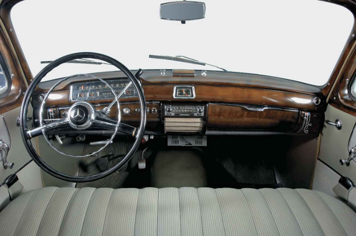 Το αυτοκίνητο ανήκε στην κλασική συλλογή της ίδιας της Mercedes-Benz και ήταν αυθεντικό (και τέλειο) μέχρι την τελευταία του λεπτομέρεια. Πρώτα από όλα εντύπωση σου έκαναν τα μικρά παράθυρα, δεύτερο το μονοκόμματο (πάγκος κοινός) εμπρός κάθισμα και τρίτο η πολυτέλεια και η ποιότητα του αυτοκινήτου. Οι πόρτες έκλειναν χρηματοκιβώτιο, το χρώμιο ήταν χρώμιο (όχι επικαλυμμένο πλαστικό) και το ξύλο, ήταν ξύλο, ξέρετε από αυτό που είναι φτιαγμένα τα δένδρα! Τίποτα δεν έτριζε και παρά το γεγονός ότι δεν ήταν βαρύ στα 1200 κιλά, είχε την αίσθηση θωρηκτού καθώς περνούσε τα σαμαράκια και τις λακκούβες. Εντάξει, το τιμόνι δεν είχε την οποιαδήποτε αίσθηση κατά πάγια πρακτική της Mercedesπου ήθελε «περιστρεφόμενες μπίλιες» και γενικά δεν χρειαζόταν να το πιέσεις για να ανακαλύψεις ότι έπλεε πάνω στις μαλακές αναρτήσεις του. Καμία πλευρική στήριξη από το κάθισμα και μόνο όταν εμπρός βολεύονταν τρείς, τότε και μόνο τότε υποψιάζομαι ότι δεν γλιστρούσες δεξιά-αριστερά, ενώ και οι πίσω οι επιβάτες θα πρέπει να ζούσαν τα ίδια και αυτοί στο πάγκο για τρείς. Κανένα παράπονο όμως από τον χώρο αποσκευών, που ήταν και μεγάλος και με καλό σχήμα.