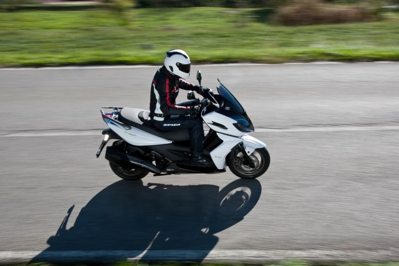 Από θεωρία στην πράξη και σύντομα στον θρόνο που χρησιμοποιεί για σέλα το K-XCT. Η θέση οδήγησης είναι καλή φυσιολογικός έως το 1,80m, άντε και λίγο παραπάνω. Διαφορετικά, ψηλότερος λεβέντης θα νιώσει τα γόνατα του να βρίσκουν στα πλαϊνά του fairing. Τα χέρια βρίσκουν σωστές λαβές που δεν κουράζουν, η εργονομία και η θέση μάχης είναι κάτι ανάμεσα στο πρακτικό των scooter και το επιθετικό των street μοτοσυκλετών. Ανάμεσα από τα πόδια υπάρχει η τάπα που δίνει πρόσβαση στο ρεζερβουάρ των 11 λίτρων και συμβάλει στην πρακτικότητα γιατί δεν απαιτεί να κατέβει ο αναβάτης. Ο γνωστός μονοκύλινδρος 298 cc, τεχνολογίας G5, διαθέτει νέο σώμα ψεκασμού της Keihin, έχει δεχθεί αλλαγές στη χαρτογράφηση και αποδίδει 28 ίππους στις 7.800 rpm και 29 Nm ροπής στις 6.250 rpm. Σε συνδυασμό με τα 164 κιλά της κατασκευής δημιουργούν καλές προϋποθέσεις για απόδοση και επιδόσεις κάτι που διαπιστώνεις με απλή περιστροφή του γκαζιού, χωρίς απαραίτητα να εξαντλήσεις την διαδρομή του. Η σύντομη επαφή με το K-XCT 300i στους δρόμους του Πειραιά, δεν ήταν αρκετή για να διαπιστώσουμε την οικονομία καυσίμου (3,2 lt/100 km σύμφωνα με την εταιρεία), όμως αρκετή για να το κάνουμε όσον αφορά την απόκριση στο γκάζι και την ψυχή του κινητήρα. Ταυτόχρονα έδειξε ότι είναι δραστήριο σε ευελιξία, συμπαγές και στιβαρό με ανάρτηση που ακούει και δεν κοπανάει, ποιοτικό σε συναρμολόγηση με απουσία τριγμών και με φρένα που θυμίζουν μοτοσυκλέτα. Με λίγα λόγια μια μοτοσυκλέτα, σε συσκευασία σκούτερ.