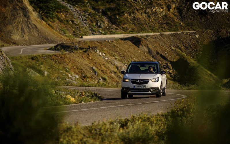 Αναμενόμενα απούσα η κοφτερή συμπεριφορά, όπως και η άμεση απόκριση από χειριστήρια, αλλά δεν ενοχλεί γιατί τα αντικαθιστά με μια φιλική αποτελεσματικότητα που είναι άλλωστε και το ζητούμενο. Αν επιτεθείς στις στροφές θα βιώσεις μικρές κλίσεις από το αμάξωμα και πλεύσεις από τις μεγαλύτερες διαδρομές της ανάρτησης που, ναι μεν δεν επηρεάζουν το τελικό αποτέλεσμα της ασφαλούς συμπεριφοράς, αλλά σου χτυπάνε το καμπανάκι να χαμηλώσεις τα φτερά σου. Άλλωστε σε αυτή την περίπτωση τα ηλεκτρονικά ήδη θα έχουν αναλάβει το έργο τους, ενώ αν ακολουθήσεις ομαλή οδήγηση με ροή και χωρίς τσαμπουκαλεμένες εντολές, θα διαπιστώσεις ότι το σύνολο έχει δυνατότητες να κινηθεί σβέλτα. Η κατανάλωση παραμένει στη λογική των 6 με 7 lt/100km, χωρίς να έχεις στο μυαλό σου στην οικονομία, ενώ στην ενεργητική ασφάλεια συμβάλει και η απόδοση των φρένων που δεν έδειξαν να προβληματίζονται στην ποικιλία των συνθηκών που το οδηγήσαμε. Οι χωματόδρομοι είναι μέσα στο πεδίο δράσης του Crossland X, αλλά μέχρι εκεί, γιατί το μοναδικό του προνόμιο είναι η απόσταση από το έδαφος που του δίνει το ύφος της κατηγορίας που ανήκει. Εδώ τουλάχιστον του συγχωρείς τις πλεύσεις που προαναφέρθηκαν και διαπιστώνεις την αγχολυτική ενδοτικότητα της ανάρτησης που θα μαζέψει το ανάγλυφο της διαδρομής με αποτελεσματικό τρόπο. Ταξιδιάρικο στον ανοιχτό δρόμο, εύστοχο στον επαρχιακό και φιλότιμο όταν τελειώσει η άσφαλτος, το Crossland Χ απλοποιεί τις καταστάσεις και δείχνει ελκυστικό όσο το ζεις.