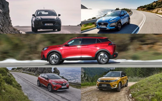 Πέντε SUV από τη μικρή κατηγορία, που κυριαρχεί στις προτιμήσεις του αγοραστικού κοινού. Πρόκειται για τα Ford Puma Hybrid, Hyundai Kona Hybrid, Peugeot 2008, Renault Captur και Suzuki Vitara Hybrid.