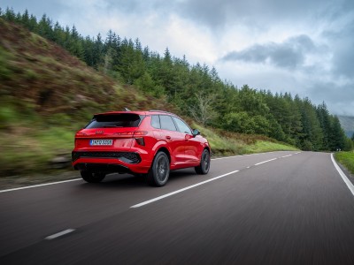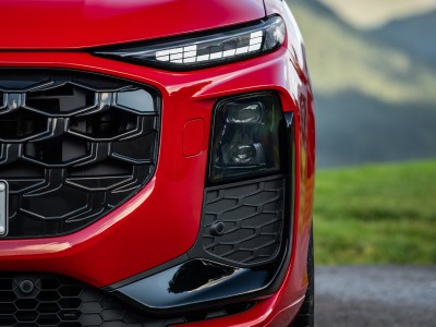 Τα φωτιστικά σώματα δύο επιπέδων, με τα λεπτά LED ημέρας (μπορείς να επιλέξεις το σχέδιο της φωτεινής υπογραφής τους, από το infotainment) και τους κεντρικούς προβολείς «καμουφλαρισμένους» στις πλαϊνές εισαγωγές του προφυλακτήρα, δημιουργούν ένα ενδιαφέρον σύνολο. Τα έντονα «νεύρα» στο καπό, οι καμπύλες στο προφίλ του αμαξώματος και τα επίσης λεπτά φώτα LED πίσω (προαιρετικά OLED), σε συνδυασμό με τη φωτεινή μπάρα που διατρέχει τη θύρα του πορτμπαγκάζ και το φωτιζόμενο σήμα, υπογράφουν τη νέα εποχή του Audi Q3. Τέλος, αξίζει να σημειωθεί ότι ακόμη και στην SUV εκδοχή του Audi Q3 (όχι τη Sportback έκδοση, δηλαδή) η γραμμή της οροφής είναι επικλινής «σβήνοντας» προς την κολόνα C, ενισχύοντας με αυτόν τον τρόπο τα δυναμικά χαρακτηριστικά του σχήματος.
