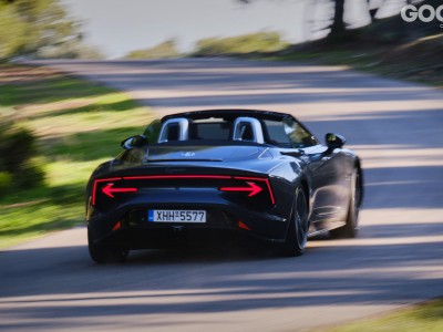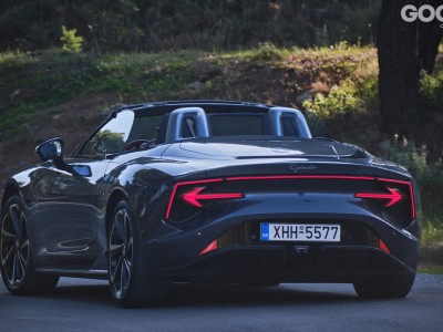 Στην πράξη, η ανάρτηση δε συνεργάζεται όπως θα έπρεπε με το σφιχτό σασί. Μοιάζει να έχει πιο σκληρό set up στα ελατήρια και πιο μαλακά αμορτισέρ, με αποτέλεσμα το rebound της σε γρήγορες εναλλαγές πορείας να είναι απότομο, προκαλώντας νευρικές αντιδράσεις στο πίσω μέρος του Cyberster. Αντιδράσεις βέβαια που είναι ελεγχόμενες όχι μόνο εξαιτίας των ηλεκτρονικών συστημάτων ευστάθειας αλλά κυρίως λόγο της άμεσης εμπλοκής των ηλεκτρομοτέρ (ισχυρότερο το πίσω) και του ακριβέστατου τιμονιού. Στην ερώτηση τώρα που ίσως να απασχολεί πολλούς εάν το Cyberster «κουνά την ουρά του» πλαγιολισθαίνοντας με στυλ, η απάντηση είναι όχι. Υπό φυσιολογικές συνθήκες πάντα… Γιατί στη χώρα μας με τους κακούς από πλευράς ποιότητας δρόμους είναι πιθανό στην έξοδο της στροφής και με λίγο παραπάνω γκάζι να «γλιστρήσει» η ουρά. Καλώς ή κακώς όμως, δεν έχει διάρκεια και δεν είναι και εύκολα ρυθμίσιμη στο γκάζι. Ρίχνεις ρυθμούς, αφήνεις τα φρένα να «ηρεμήσουν», τη μπαταρία να «coolαρει» και ανοίγεις οροφή (σε 10’’ και με ταχύτητα κίνησης έως 50 km/h). Άξαφνα, το σκηνικό αλλάζει ξανά. Νιώθεις μοναδικά! Είναι πρωτόγνωρο το συναίσθημα να ακούς μονάχα τους ήχους από τη φύση και ελάχιστο θόρυβο από την κύλιση των τροχών στο οδόστρωμα. Νιώθεις σα να πετάς. Ποτέ δεν πίστευα ότι θα αισθανόμουν έτσι σε ένα ηλεκτρικό αυτοκίνητο…