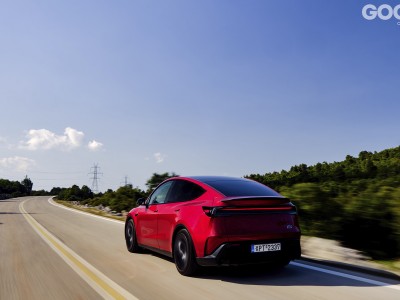 Το τιμόνι είναι γρήγορο, με δύο στροφές σχεδόν από άκρη σε άκρη. Έχει καλή αίσθηση και πληροφόρηση με το βάρος του να αλλάζει πολύ, και αχρείαστα κατά την άποψή μου, στο πρόγραμμα Sport. Η ανάρτηση, με διπλά ψαλίδια εμπρός και πολλαπλούς συνδέσμους πίσω, ταιριάζει γάντι στις ανάγκες του οχήματος, και παρότι πιο σφιχτή από τις απλές εκδόσεις της σειράς, ενοχλεί μόνο στα «κατσαρά» του οδοστρώματος, μεταφέροντας στην καμπίνα μικρής έντασης κραδασμούς. Καμιά εταιρεία βέβαια δεν κατασκευάζει τα αυτοκίνητα της με γνώμονα το ελληνικό τερέν… Σημειώστε επίσης ότι οι μηχανικοί της Tesla δημιούργησαν εάν ολοκαίνουργιο αλγόριθμο για την ανάρτηση που βελτιστοποιεί όλα τα σενάρια οδήγησης, με στόχο την σωστή ισορροπία ανάμεσα στην άνεση και στο «κράτημα». Ο ψηφιακός έλεγχος της ροής στη δύναμη των κινητήρων προσφέρει τη μέγιστη αποτελεσματικότητα στην τετρακίνηση και αρκούν κλάσματα του δευτερολέπτου για να συντονιστεί το σύστημα και να περάσει όλη την ισχύ στον δρόμο χωρίς νευρικές αντιδράσεις. Αυτό ωστόσο που σου προκαλεί τη μεγαλύτερη εντύπωση είναι το πώς λειτουργεί στην πράξη. Παρότι το Model Y Performance είναι βαρύ και με μια ελαστικότητα στο πλαίσιο του που γίνεται αισθητή υπό συνθήκες έντονου στρεσαρίσματος, το αυτοκίνητο είναι σε θέση να διορθώσει ακόμα και λάθος του οδηγού. Εάν είσαι πολύ επιθετικός στην είσοδο μιας στροφής το Model Y Performance έχει την τάση να ανοίγει ελαφρώς την τροχιά του. Μπορείτε λοιπόν είτε να «πουλήσετε» τη γρήγορη είσοδο στη στροφή είτε να σηκώσετε ελαφρώς το πόδι από το γκάζι.