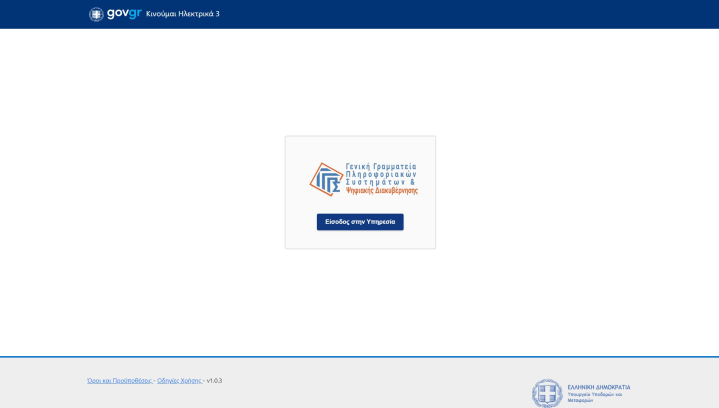 Το πρώτο βήμα είναι να μπούμε στη σελίδα του Κινούμαι Ηλεκτρικά 3, την οποία θα βρούμε στη διεύθυνση https://kinoumeilektrika3.gov.gr/. Μόλις ανοίξει η σελίδα, πατάμε το μπλε κουτάκι που γράφει «Σύνδεση στην υπηρεσία» και στην επόμενη σελίδα πατάμε την ίδια επιλογή.